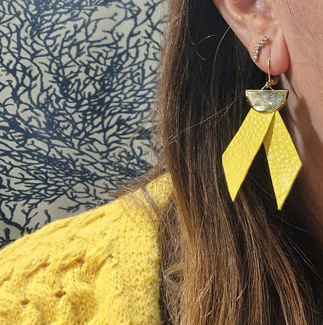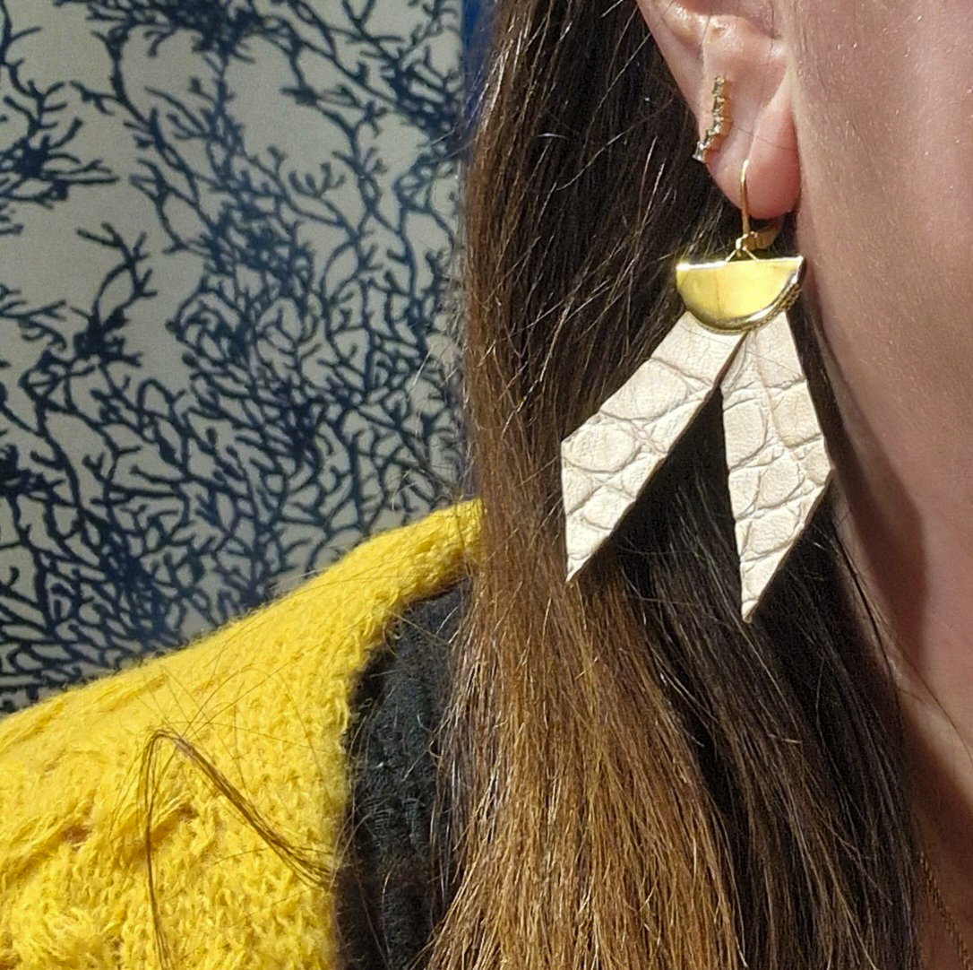 Ces boucles d’oreilles artisanales en cuir : les confettis sont chics et indémodables. Pour cette création originale, je m’adapte à vos goûts : suite à votre réservation, je vous proposerai différents cuirs et textures.