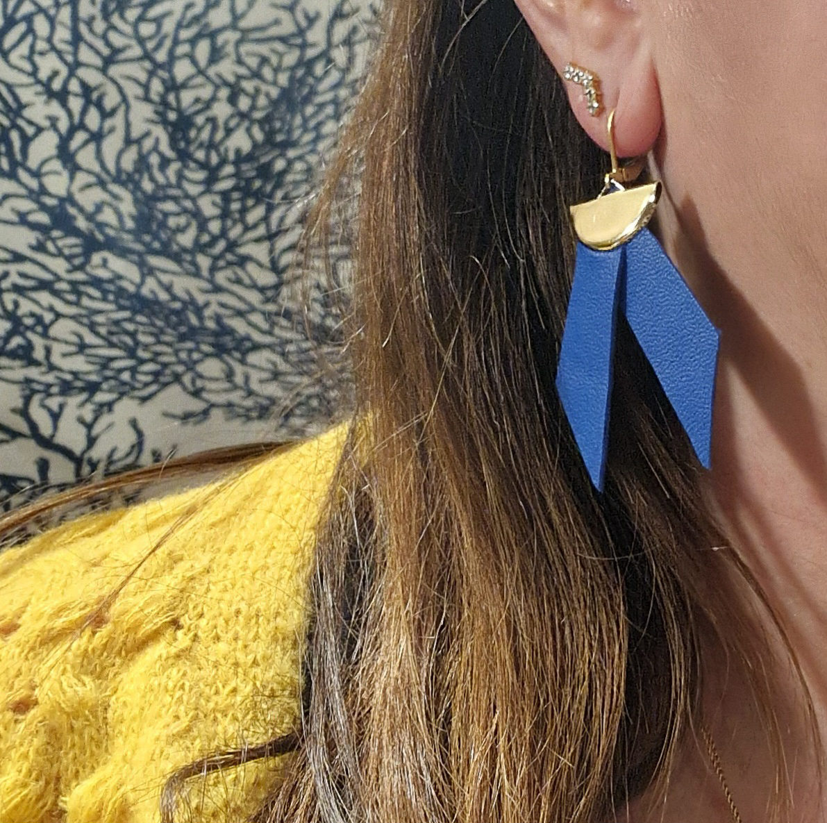 Géométriques mais sobres, ces boucles d’oreilles colorées ajoutent une touche de modernité à votre look. Jouez avec la symbolique des couleurs selon vos envies : bleu pour la douceur, rose pour la créativité, etc.