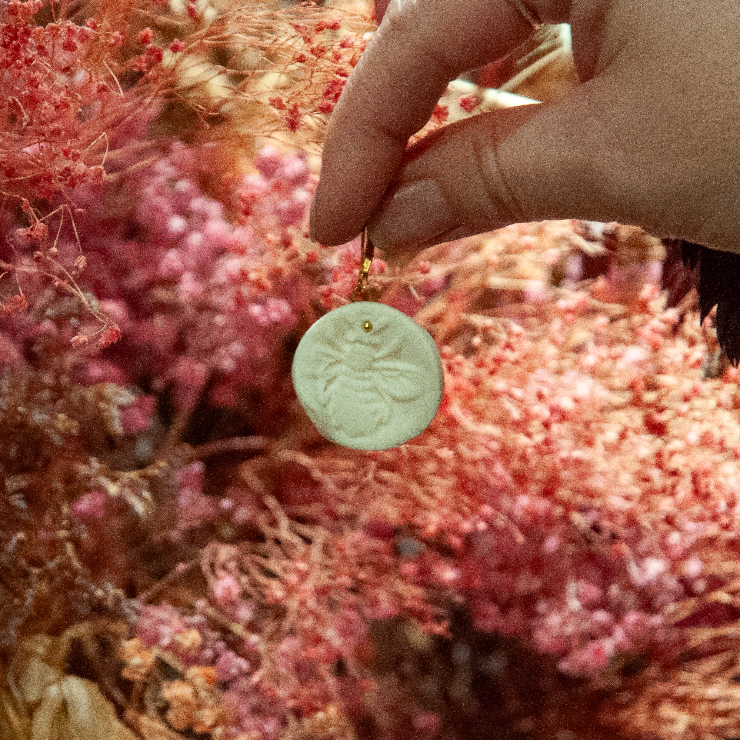 Ces boucles d’oreilles en porcelaine sont une ode aux abeilles qui butinent nos jardins. Créatrice et artisane, j’ai estampé et modelé cette petite ouvrière à la main pour ce bijou original. La porcelaine est légère à porter et beaucoup moins fragile que ce que l’on pense. Pour l’entretenir, il suffit de la laver avec de l’eau et du savon ou du dentifrice et une brosse à dents, afin de conserver au fil du temps son teint… de porcelaine. Parfaites aussi comme bijoux de mariage pour allier élégance et art.