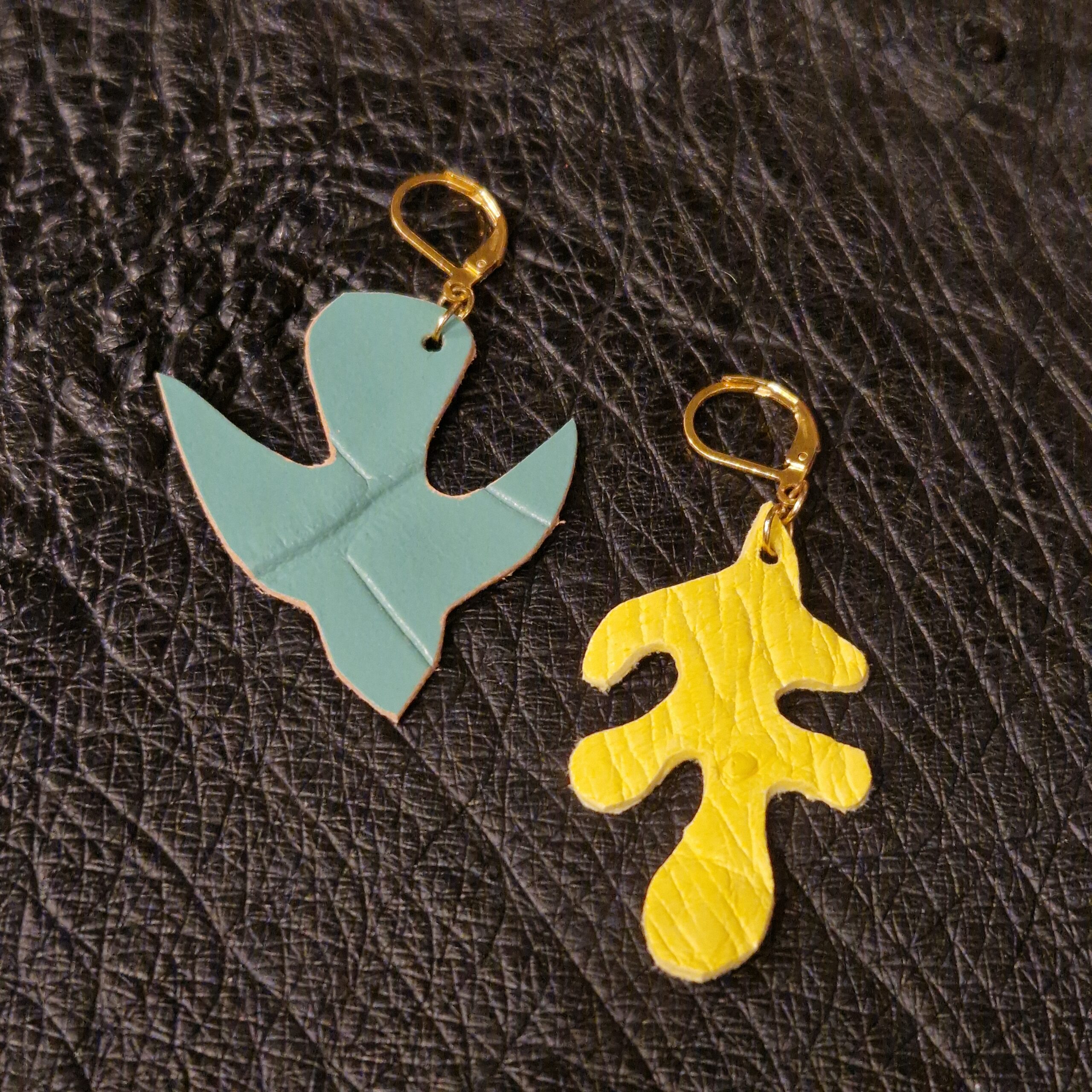 Créatrice de bijoux artisanaux et galeriste, j’aime faire des clins d’œil à mes peintres préféré(e)s. Ces boucles d’oreilles en cuir s’inspirent des tableaux d’ Henri Matisse. Artistiques, elles font un clin d’œil à la feuille et à la colombe colorées de ce maître incontesté du Fauvisme et de la Couleur. Vous pouvez aussi préférer une paire symétrique assortie, je le ferai à votre demande lors de nos échanges après la réservation.