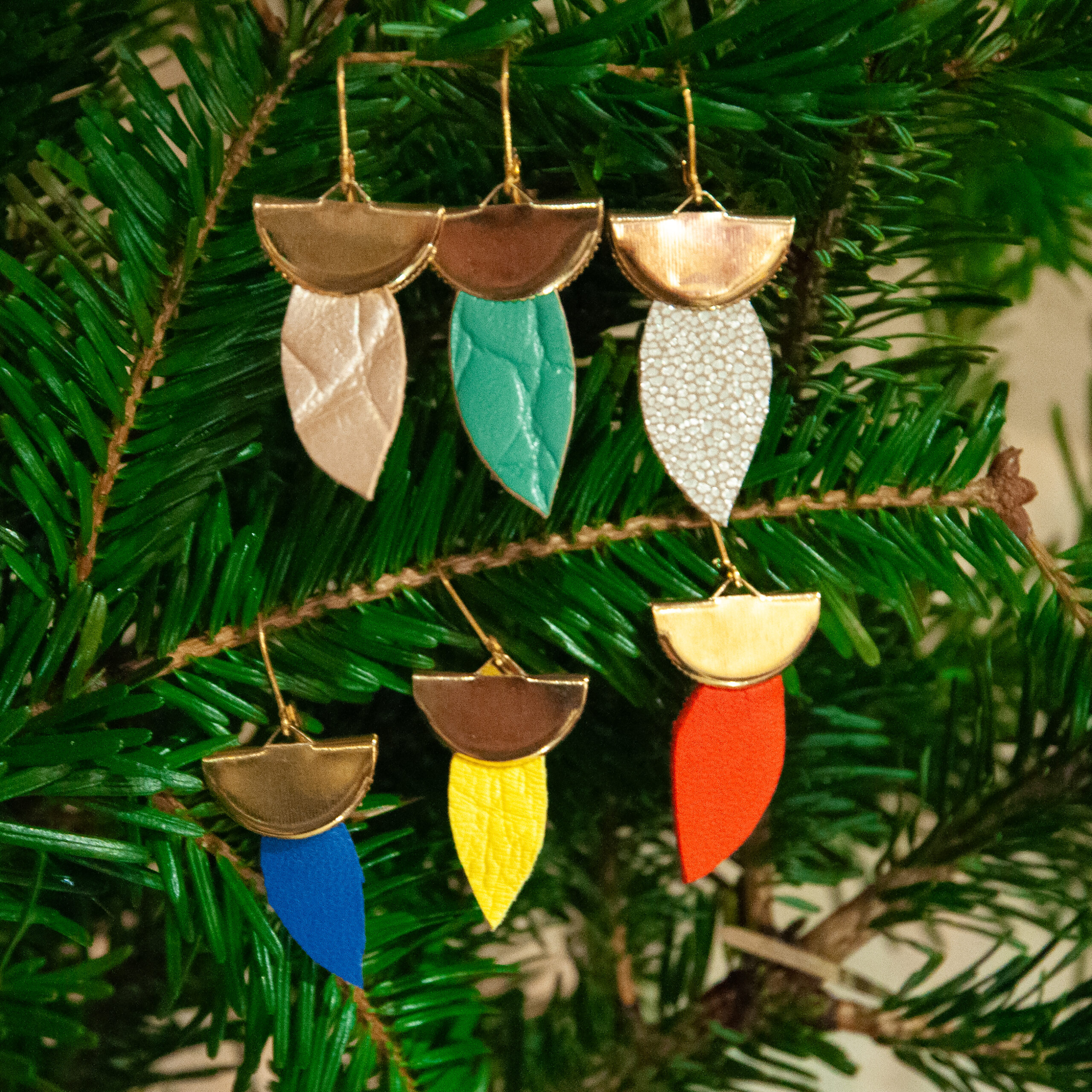 Pour ces boucles d’oreilles artisanales en cuir, je me suis tout simplement inspirée des feuilles que nous trouvons dans notre belle Occitanie. Pour cette création originale, je m’adapte à vos goûts : suite à votre réservation, je vous proposerai différents cuirs et textures.