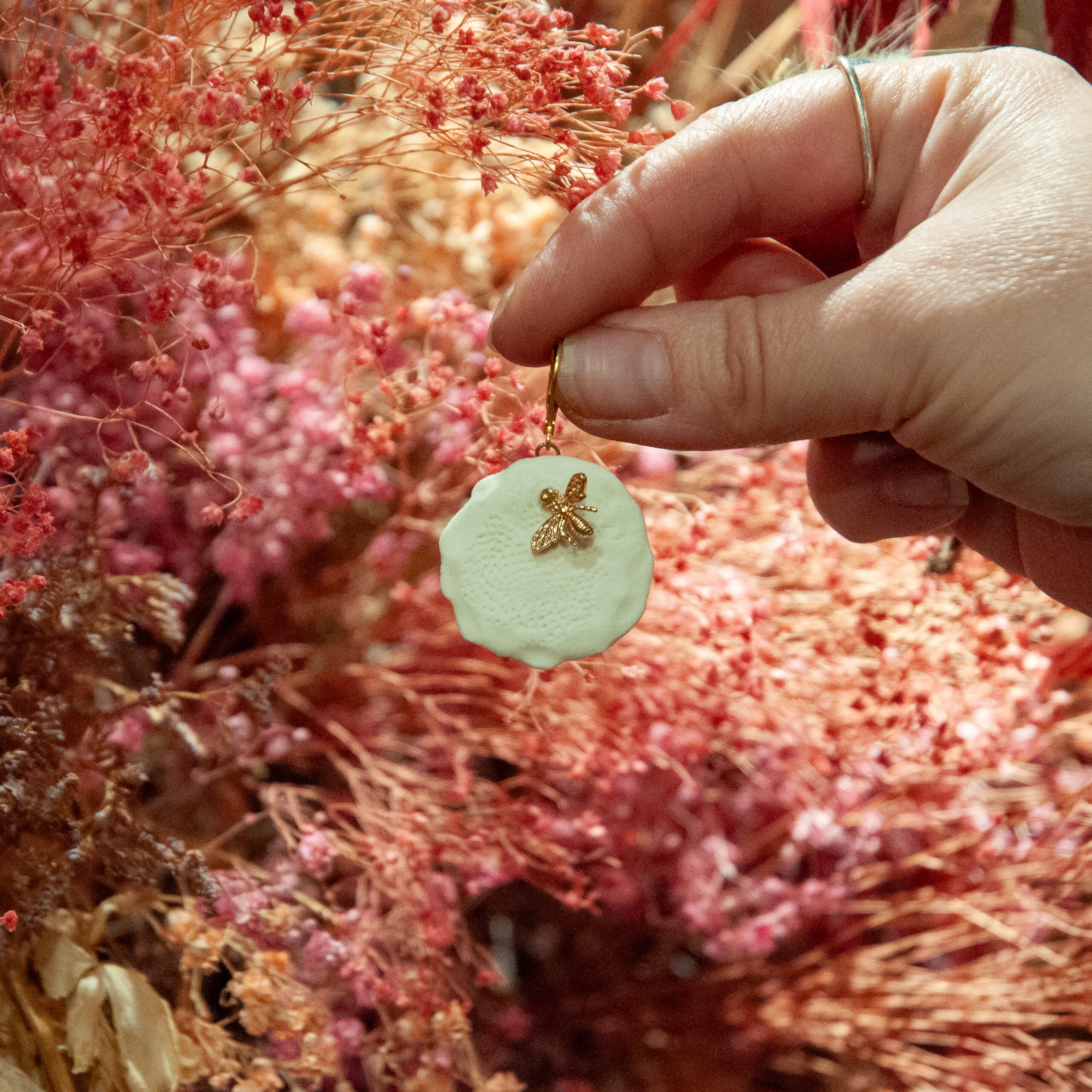 Jamais de trop, ces boucles d’oreilles ajoutent une touche délicate à vos tenues. Vous pouvez les porter avec une simple robe noire pour les faire ressortir ou bien une robe fleurie pour que l’abeille continue de butiner. Ces boucles d’oreilles artisanales sont parfaites avec une robe de mariée.