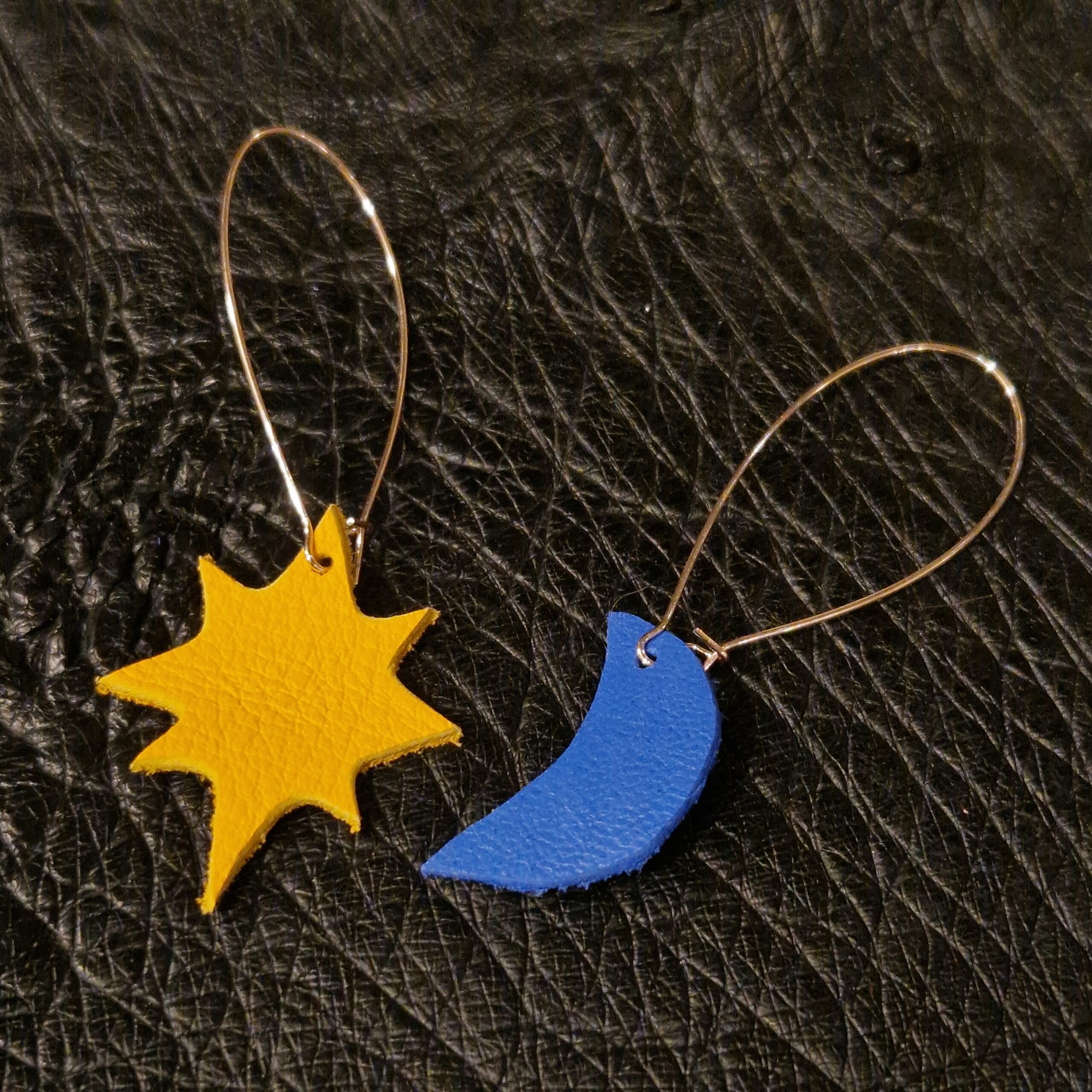 La nature est ma première muse dans la création de bijoux. Quoi de plus intemporel que le Soleil et la Lune… un clin d’œil à cette berceuse de Charles Trénet. Ces boucles d’oreilles en cuir content la rencontre de ses deux astres, de ses deux opposés. Après la réservation de cette paire, je pourrais personnaliser la couleur du cuir suivant vos goûts. Vous pouvez aussi choisir de rendre cette paire symétrique. Parlons-en après votre réservation !
