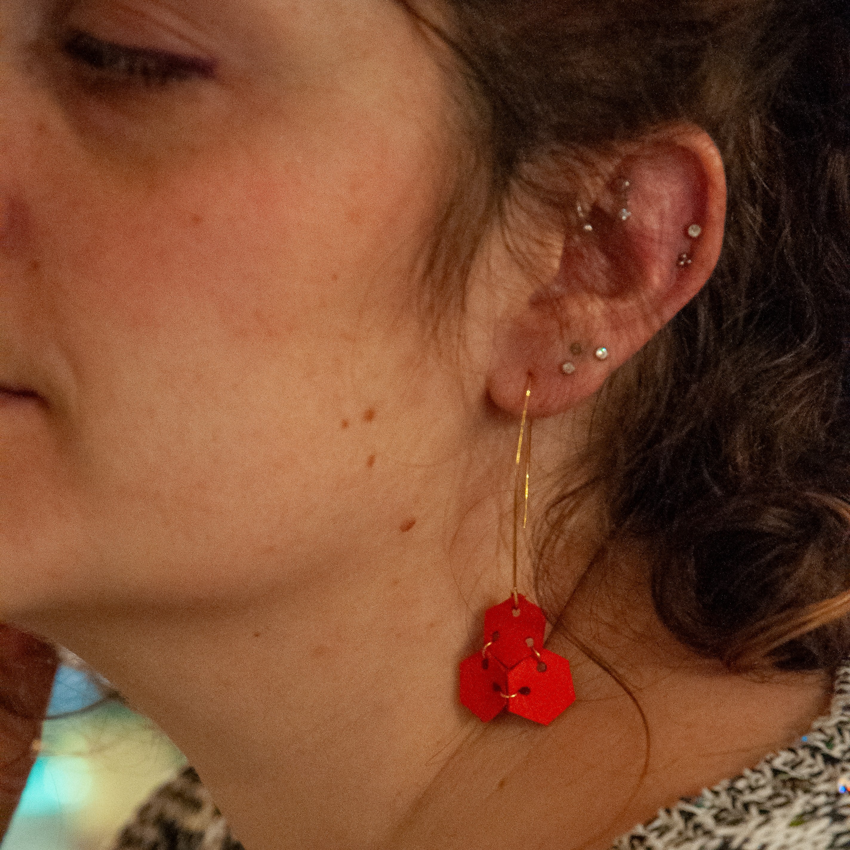 Chaque boucle est composée d’une dormeuse de 1,5 cm et d’une alvéole de 1,5cm x 1,5cm et de 3 alvéoles 2,5cm x 2,5cm.