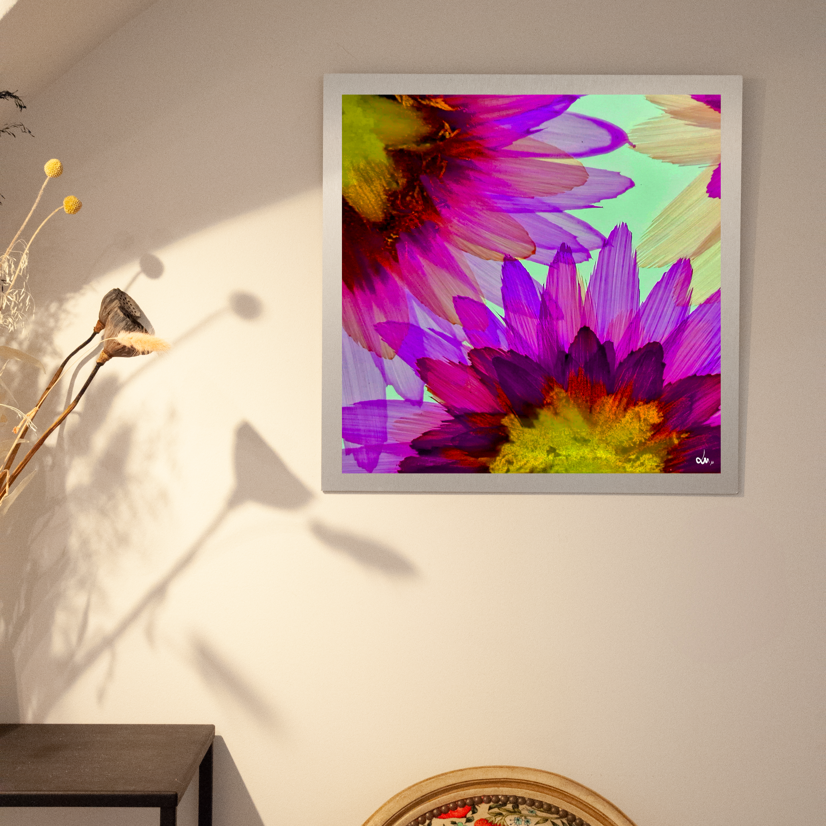 Cette illustration est une de mes créations originales. Comme souvent, je m’inspire de la nature et la mets à l’honneur dans mon atelier. Ici, j’ai voulu allier la beauté des fleurs et la légèreté des plumes. Cette œuvre est colorée et abstraite. Pleine de poésie, elle décore à ravir vos intérieurs en y ajoutant une touche de couleur.