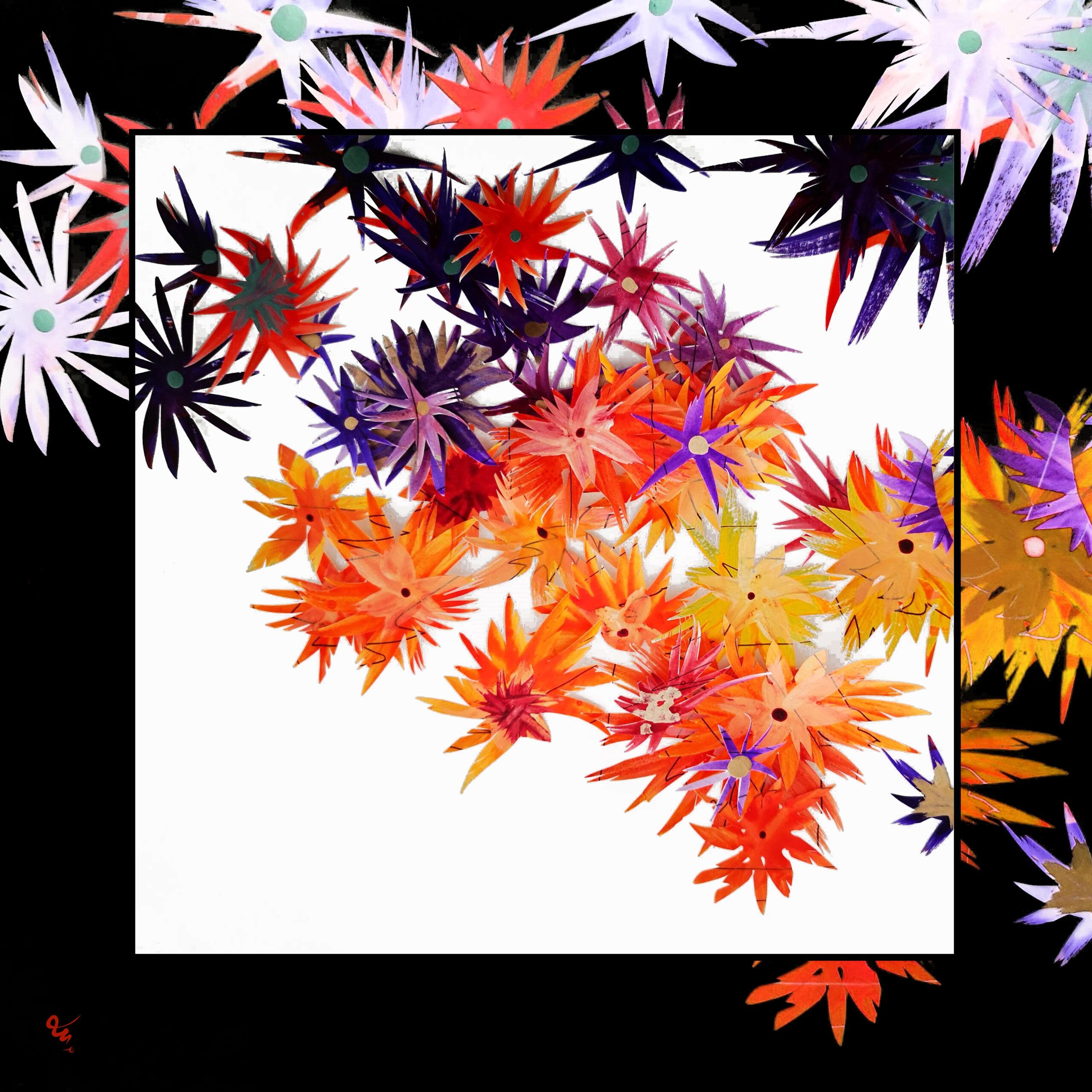 Foulard Fleurs Fragiles cadre noir